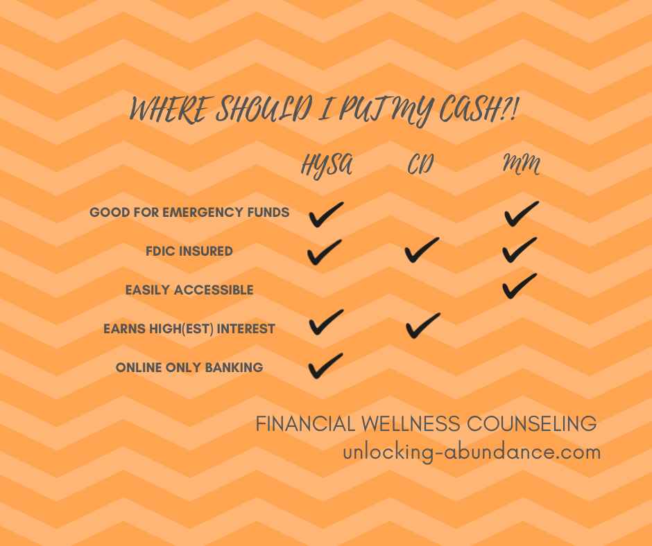 Three of the most common Savings vehicles that may earn you higher interest right now are: Money Market Accounts, High Yield Savings Accounts (HYSA), and Certificates of Deposit (CD’s).