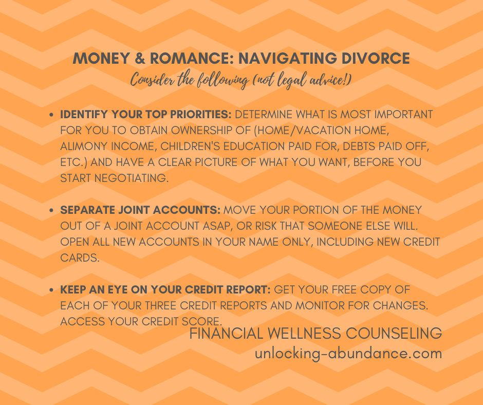 We looked at what to keep in mind when considering a divorce, but what if your mind is made up, and/or you’re right in the thick of it? Read below for just a few things to prioritize when it comes to making the best decisions for your finances, and, as always—not legal advice, ever!