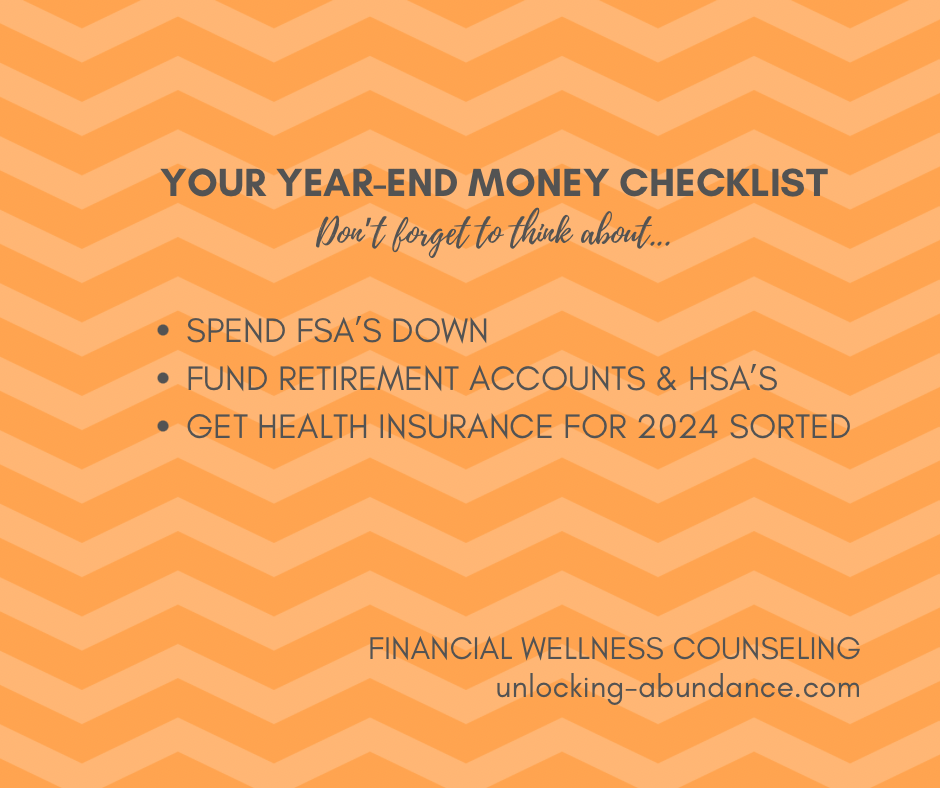 It’s time to close out 2023 (!!!) and with that comes some money moves and/or opportunities for review! Read below for a few time-sensitive checklist items you may need to take advantage of right now!