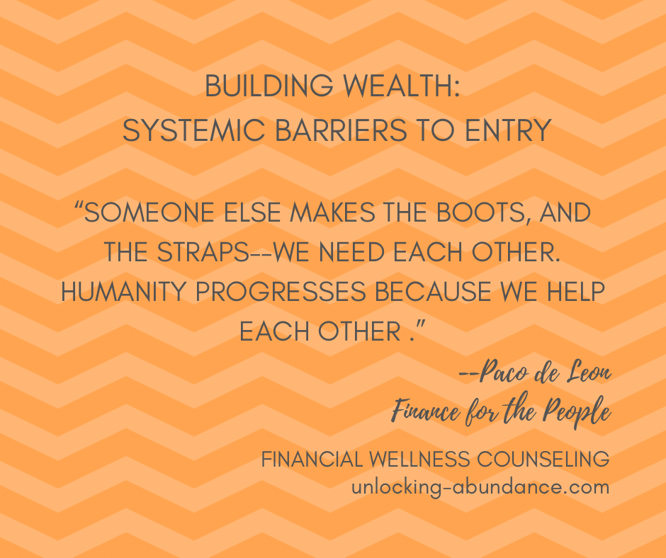 Now, before we completely sign-off on “the burden is completely on you as the earner”, “pull yourself up by your bootstraps”, etc., Capitalistic mentality, it’s important to acknowledge the well-documented barriers to building wealth. Systematic financial inequities perpetually exist, which are completely outside of our control, and the impacts are substantial.