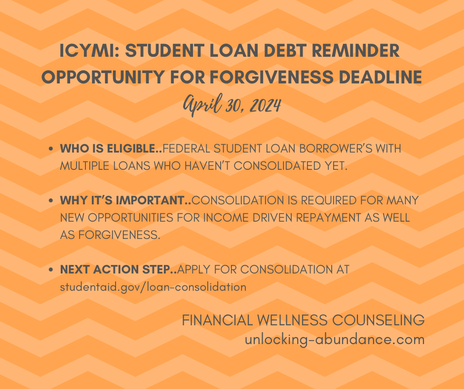 Just a quick ICYMI; there is an important deadline on the horizon for federal student loan borrowers!