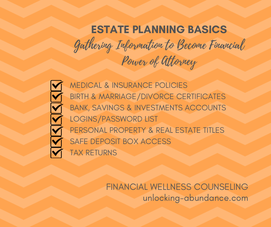 Read below for more on the Financial Power of Attorney: what it is, what you may be responsible for if called upon to be one, and what kind of information may be helpful for you to gather in advance! As always, not legal advice!