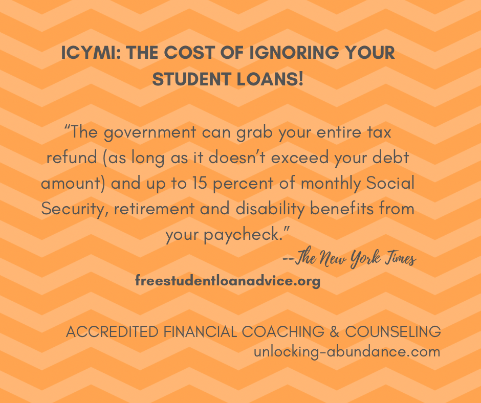 Your Next Steps as a Borrower in Default: Check your balance situation. Give yourself grace. There are MANY borrower’s in your shoes right now. This summer, you may receive a notification by email of wage garnish notification. The email will contain a link for Debt Resolution with Federal Student Aid. Connecting with this department is your first step towards getting back on track.